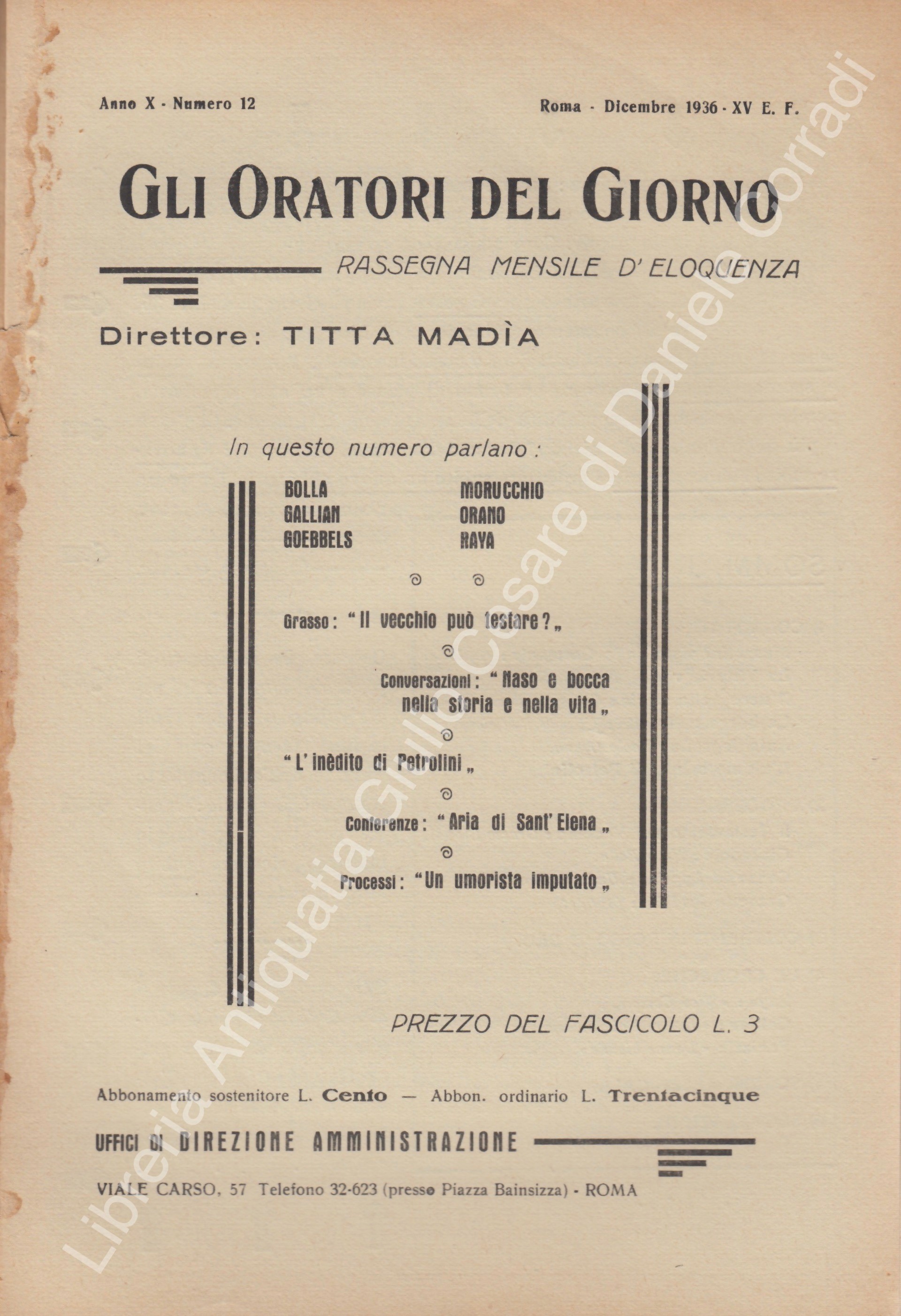 Gli oratori del giorno. Rassegna mensile d'eloquenza. Anno X - Numero 12. Dicembre 1936