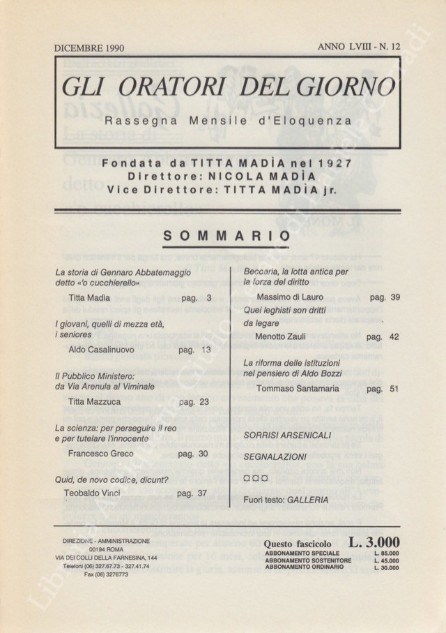 Gli oratori del giorno. Rassegna mensile d'eloquenza. Anno LVIII - Numero 12. Dicembre 1990