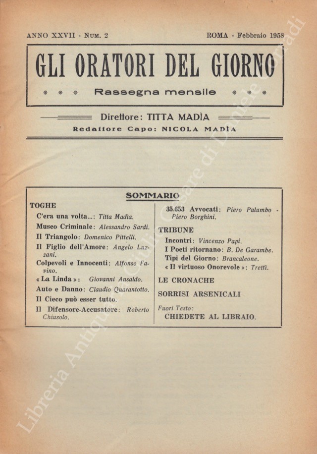 Gli oratori del giorno. Rassegna mensile d'eloquenza. Anno XXVII - Numero 2. Febbraio 1958