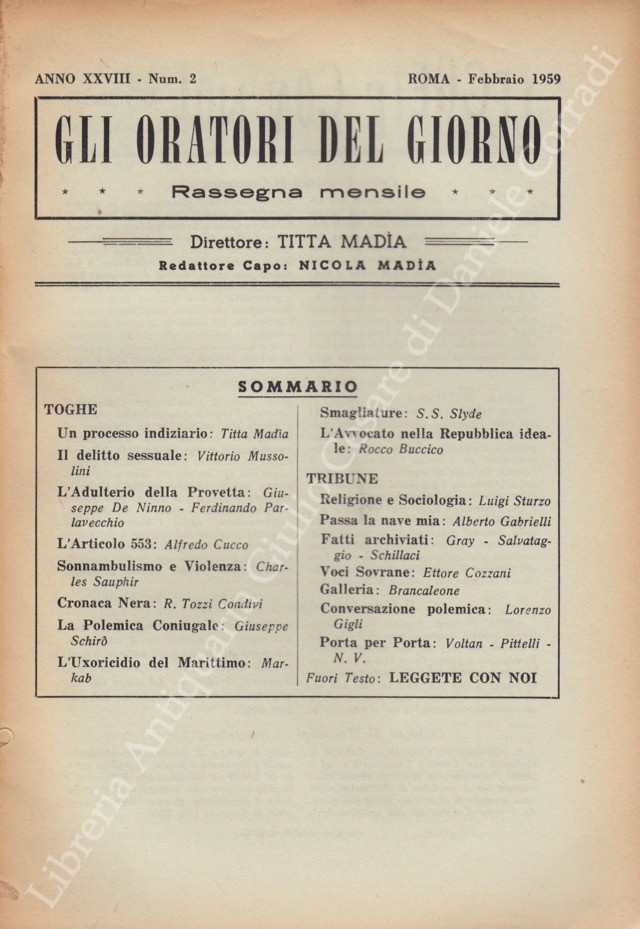 Gli oratori del giorno. Rassegna mensile d'eloquenza. Anno XXVIII - Numero 2. Febbraio 1959