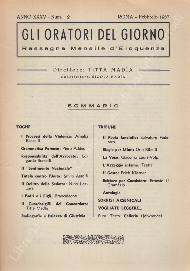 Gli oratori del giorno. Rassegna mensile d'eloquenza. Anno XXXV - Numero 2. Febbraio 1967