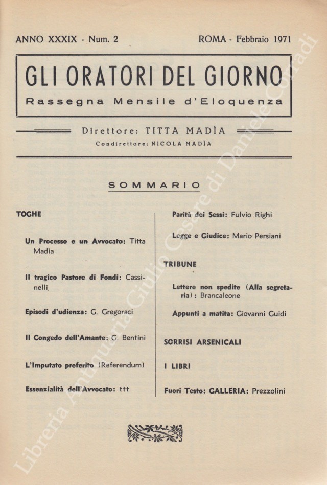 Gli oratori del giorno. Rassegna mensile d'eloquenza. Anno XXXIX - Numero 2. Febbraio 1971