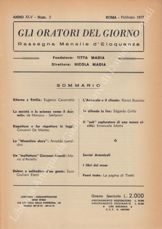 Gli oratori del giorno. Rassegna mensile d'eloquenza. Anno XLV - Numero 2. Febbraio 1977