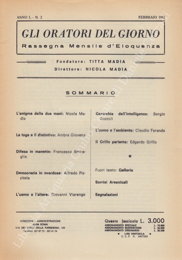 Gli oratori del giorno. Rassegna mensile d'eloquenza. Anno L - Numero 2. Febbraio 1982