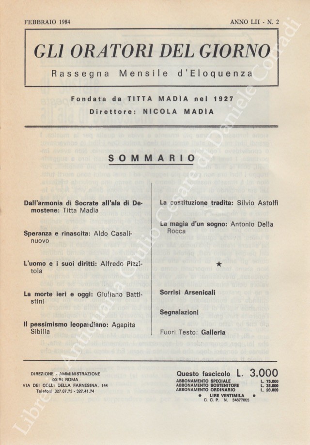 Gli oratori del giorno. Rassegna mensile d'eloquenza. Anno LII - Numero 2. Febbraio 1984