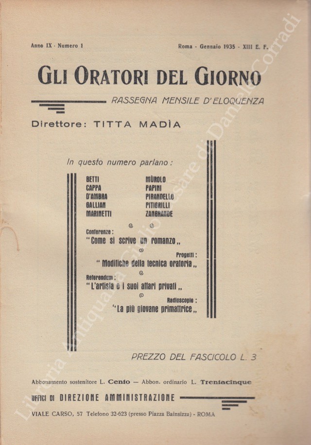 Gli oratori del giorno. Rassegna mensile d'eloquenza. Anno IX - Numero 1. Gennaio 1935