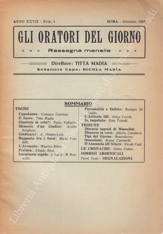 Gli oratori del giorno. Rassegna mensile d'eloquenza. Anno XXVII - Numero 1. Gennaio 1958