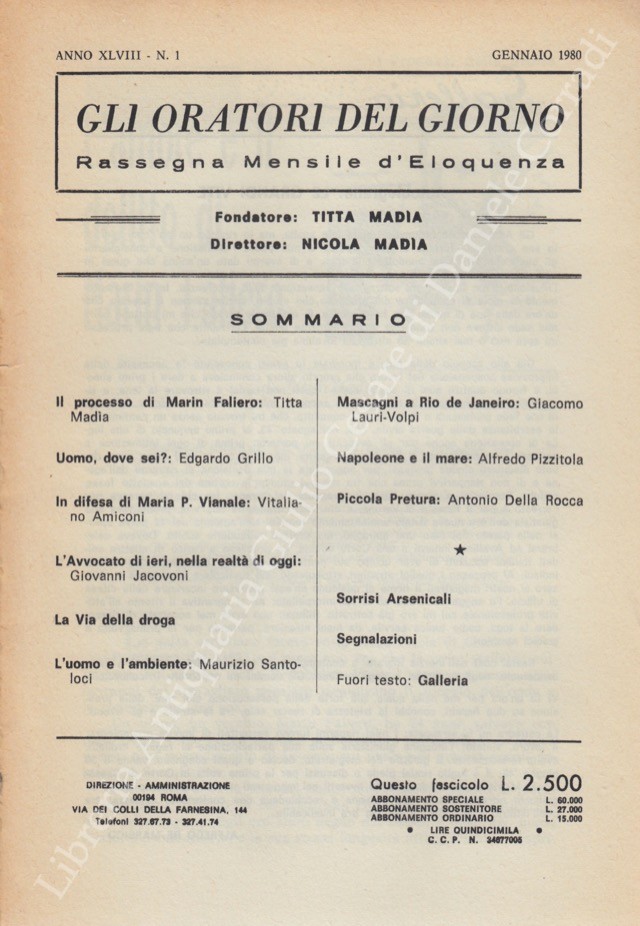 Gli oratori del giorno. Rassegna mensile d'eloquenza. Anno XLVIII - Numero 1. Gennaio 1980