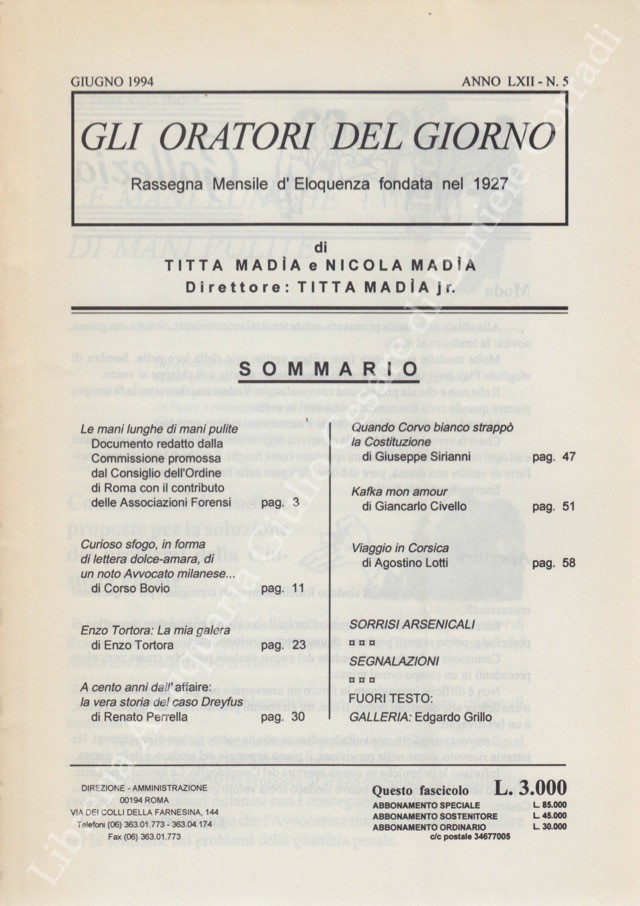Gli oratori del giorno. Rassegna mensile d'eloquenza. Anno LXII - Numero 5. Giugno 1994