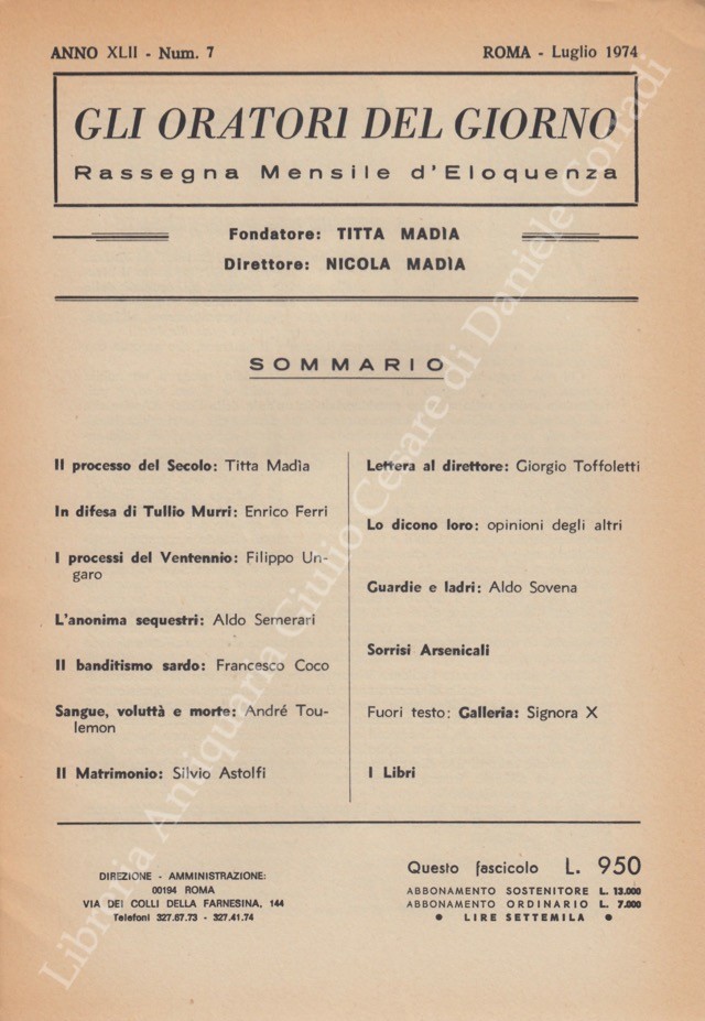 Gli oratori del giorno. Rassegna mensile d'eloquenza. Anno XLII - Numero 7. Luglio 1974