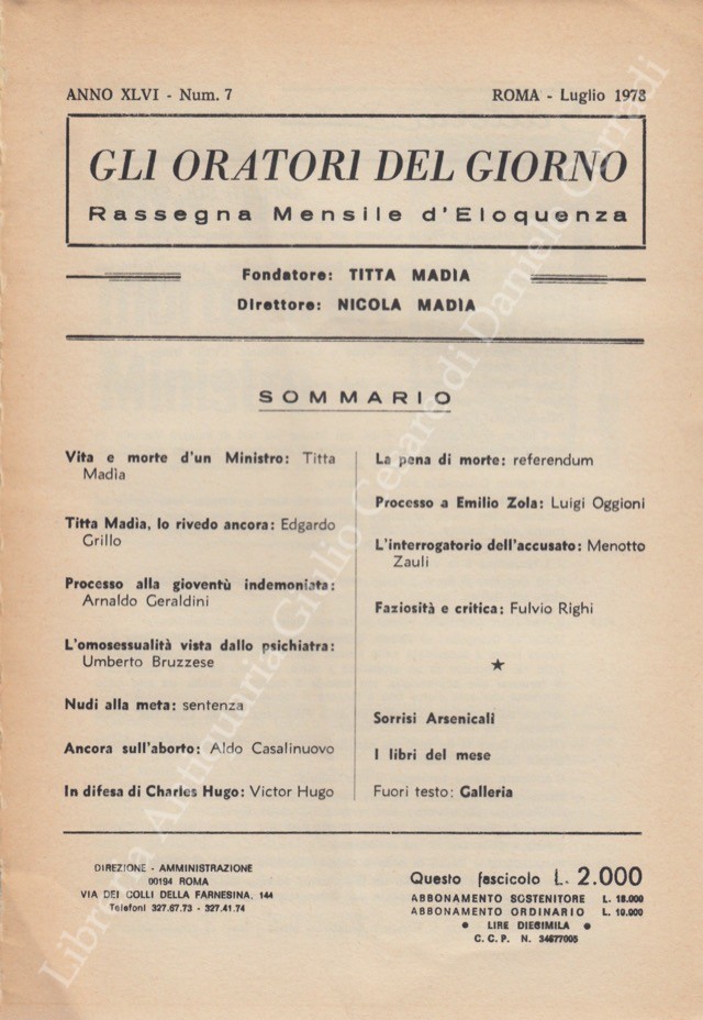 Gli oratori del giorno. Rassegna mensile d'eloquenza. Anno XLVI - Numero 7. Luglio 1978