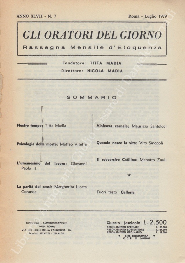 Gli oratori del giorno. Rassegna mensile d'eloquenza. Anno XLVII - Numero 7. Luglio 1979