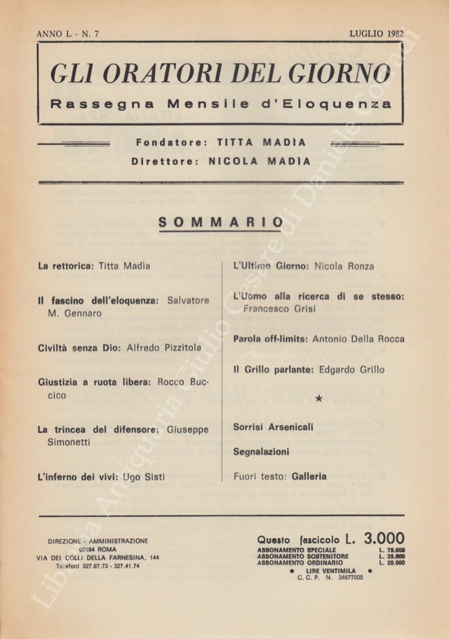Gli oratori del giorno. Rassegna mensile d'eloquenza. Anno L - Numero 7. Luglio 1982