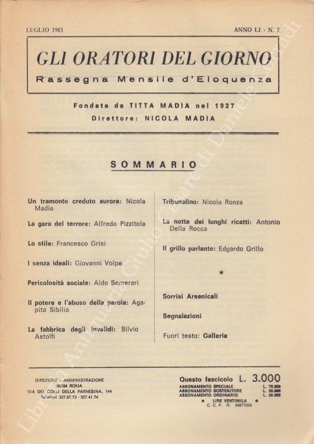 Gli oratori del giorno. Rassegna mensile d'eloquenza. Anno LI - Numero 7. Luglio 1983