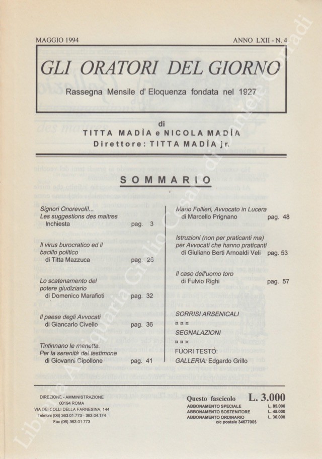 Gli oratori del giorno. Rassegna mensile d'eloquenza. Anno LXII - Numero 4. Maggio 1994