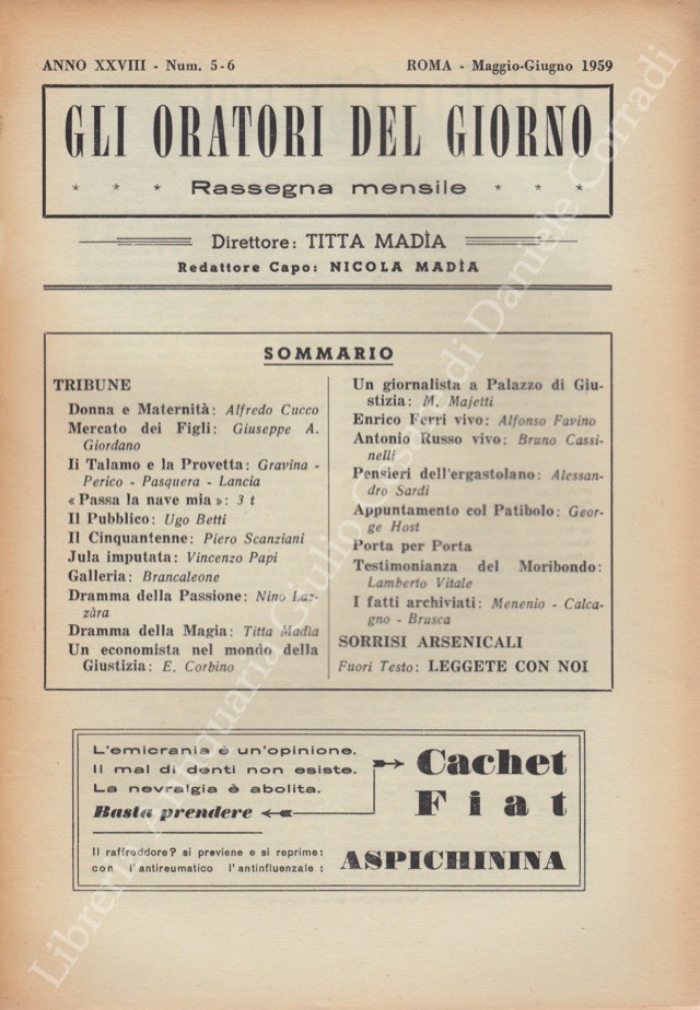 Gli oratori del giorno. Rassegna mensile d’eloquenza. Anno XXVIII – Numero 5-6. Maggio-Giugno 1959