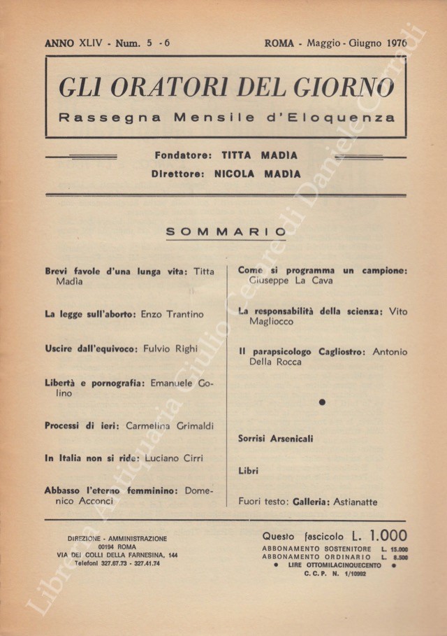 Gli oratori del giorno. Rassegna mensile d'eloquenza. Anno XLIV - Numero 5-6. Maggio-Giugno 1976