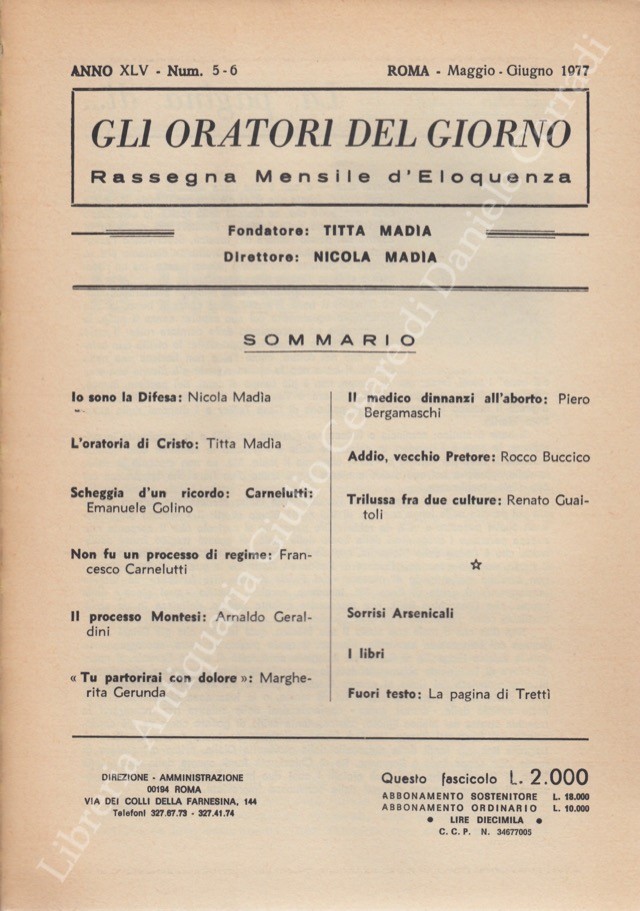 Gli oratori del giorno. Rassegna mensile d'eloquenza. Anno XLV - Numero 5-6. Maggio-Giugno 1977