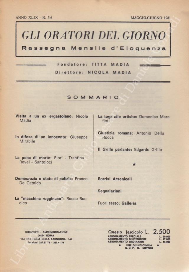 Gli oratori del giorno. Rassegna mensile d’eloquenza. Anno XLIX – Numero 5-6. Maggio-Giugno 1981