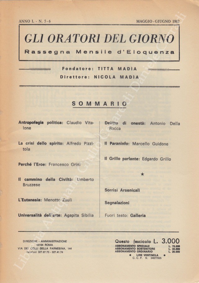 Gli oratori del giorno. Rassegna mensile d'eloquenza. Anno L - Numero 5-6. Maggio-Giugno 1982