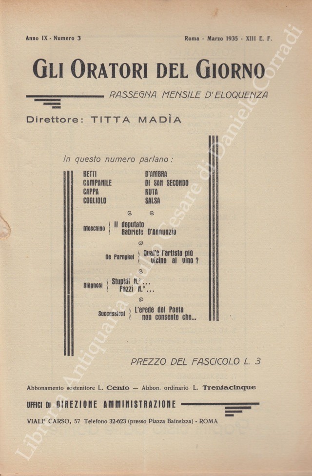 Gli oratori del giorno. Rassegna mensile d'eloquenza. Anno IX - Numero 3. Marzo 1935