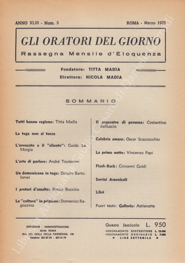 Gli oratori del giorno. Rassegna mensile d'eloquenza. Anno XLIII - Numero 3. Marzo 1975