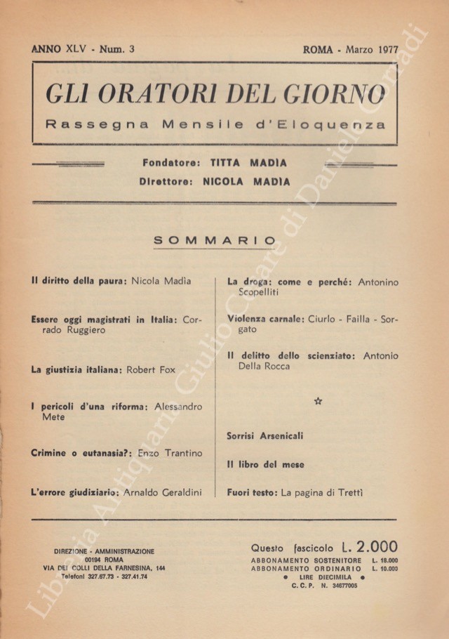 Gli oratori del giorno. Rassegna mensile d'eloquenza. Anno XLV - Numero 3. Marzo 1977