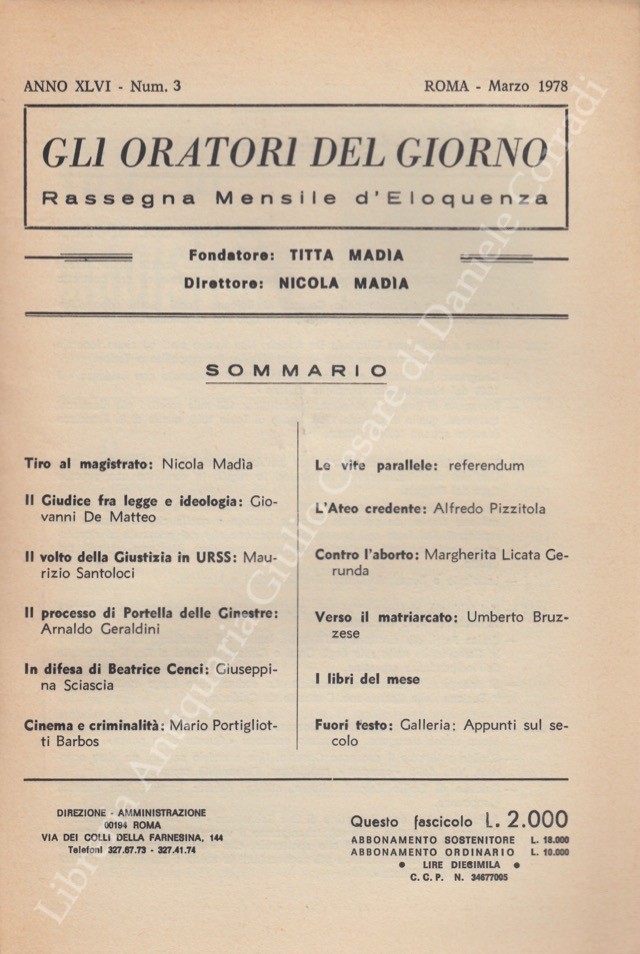Gli oratori del giorno. Rassegna mensile d'eloquenza. Anno XLVI - Numero 3. Marzo 1978