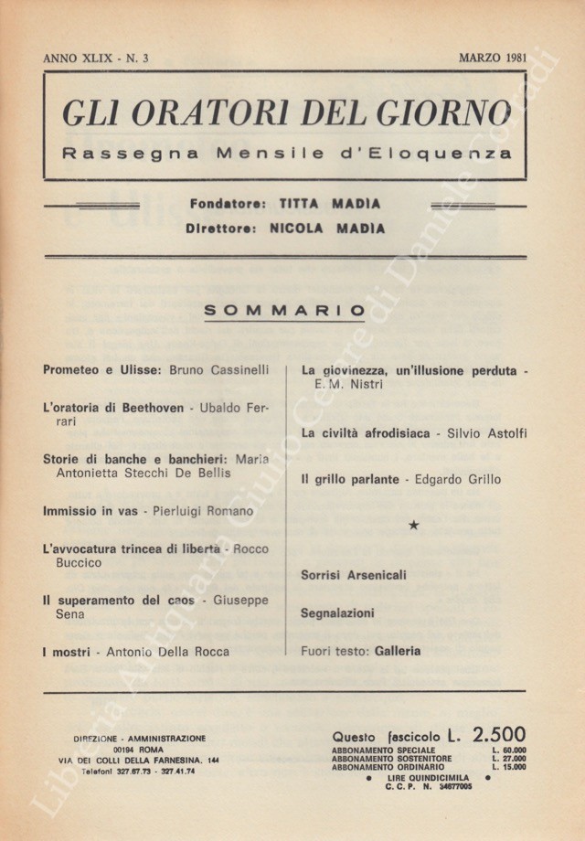 Gli oratori del giorno. Rassegna mensile d'eloquenza. Anno XLIX - Numero 3. Marzo 1981