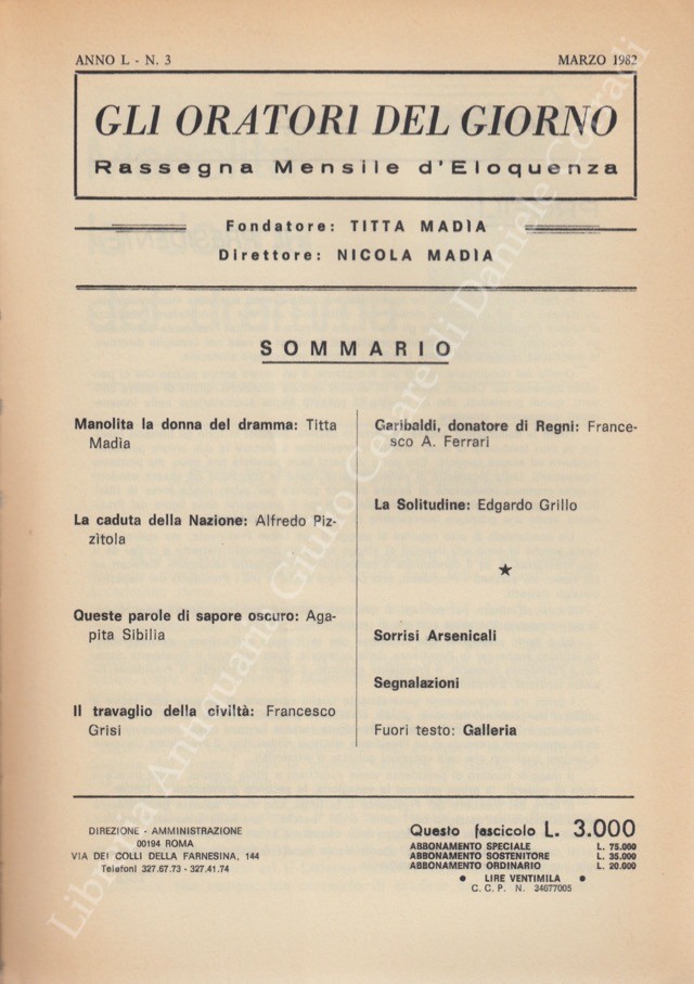 Gli oratori del giorno. Rassegna mensile d'eloquenza. Anno L - Numero 3. Marzo 1982
