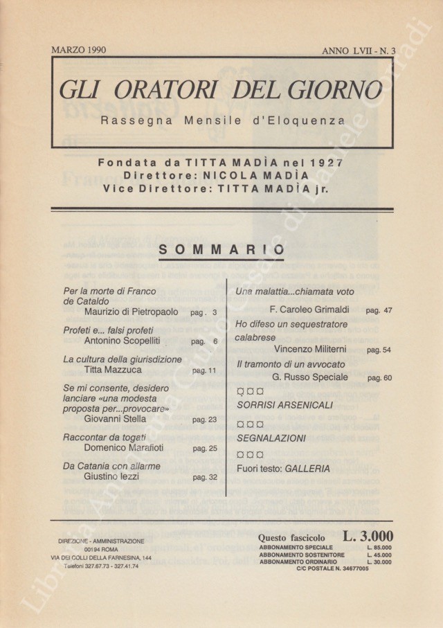 Gli oratori del giorno. Rassegna mensile d'eloquenza. Anno LVIII - Numero 3. Marzo 1990