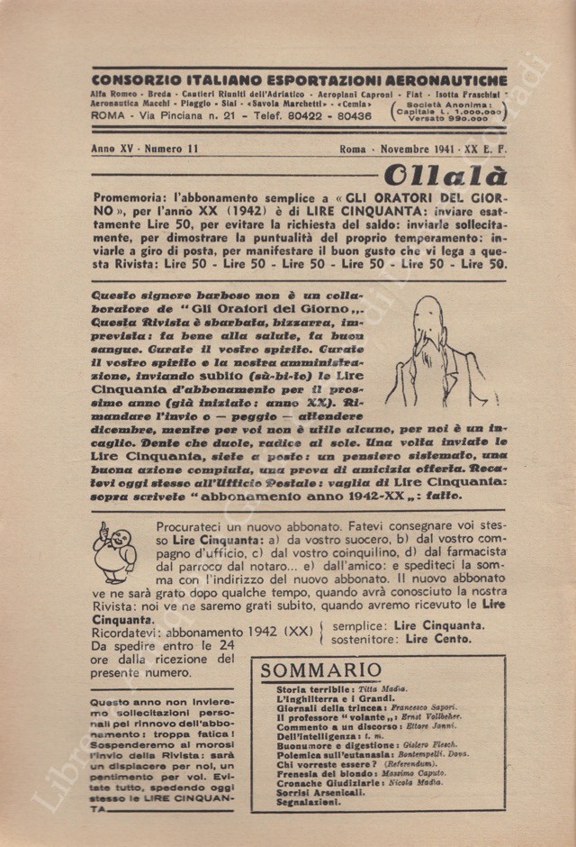 Gli oratori del giorno. Rassegna mensile d’eloquenza. Anno XV – Numero 11. Novembre 1941