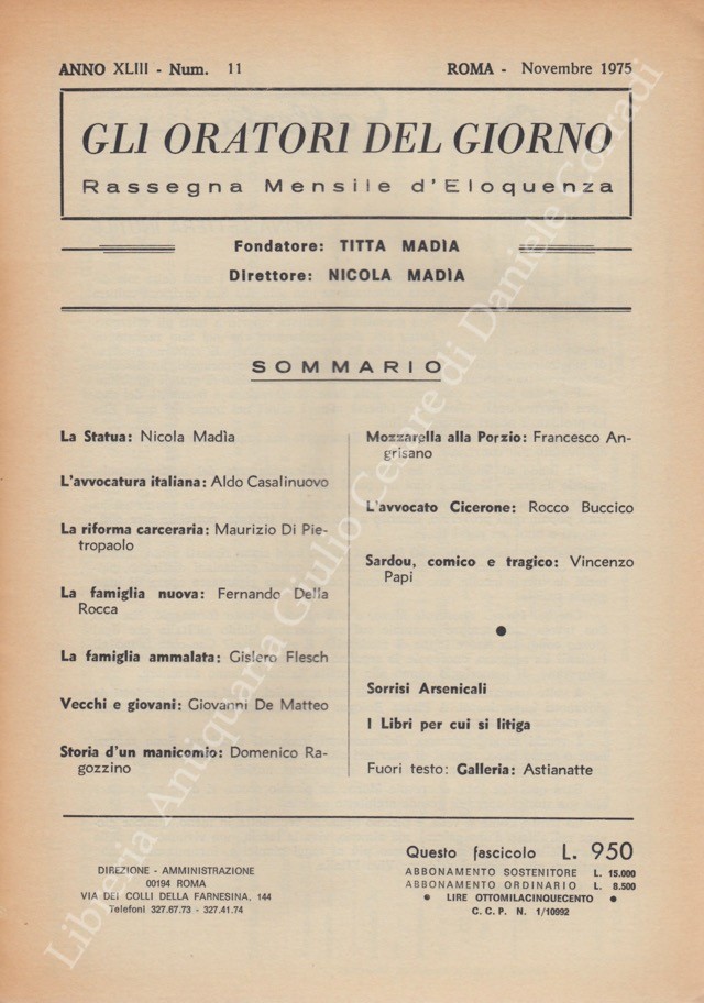 Gli oratori del giorno. Rassegna mensile d'eloquenza. Anno XLIII - Numero 11. Novembre 1975