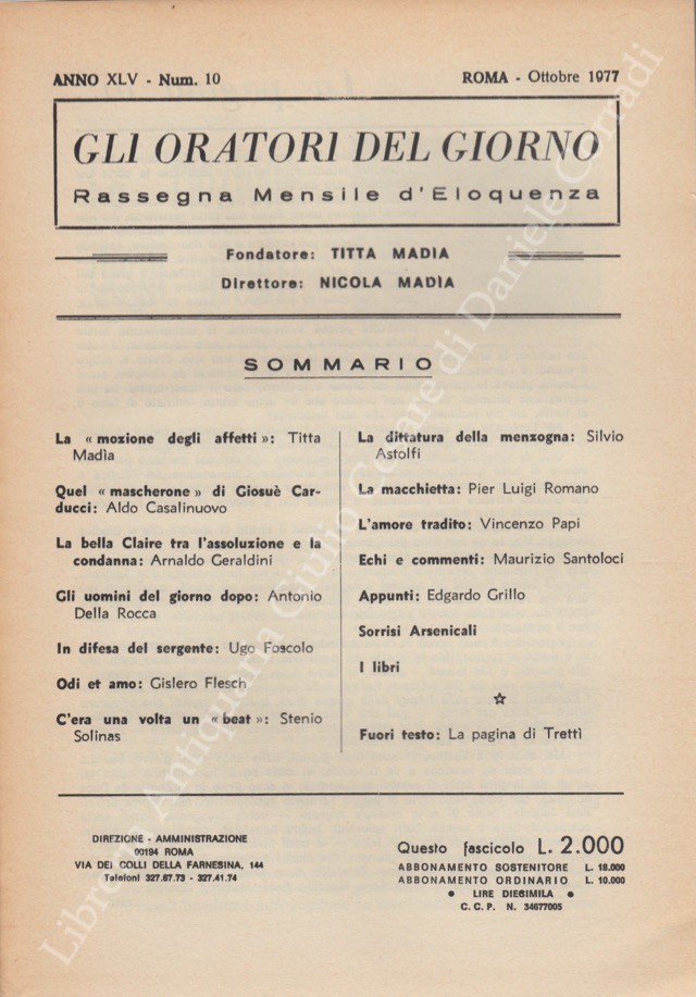 Gli oratori del giorno. Rassegna mensile d'eloquenza. Anno XLV - Numero 10. Ottobre 1977