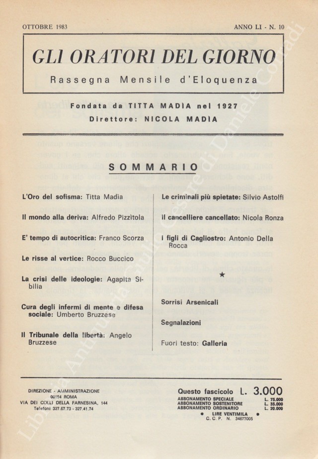 Gli oratori del giorno. Rassegna mensile d'eloquenza. Anno LI - Numero 10. Ottobre 1983