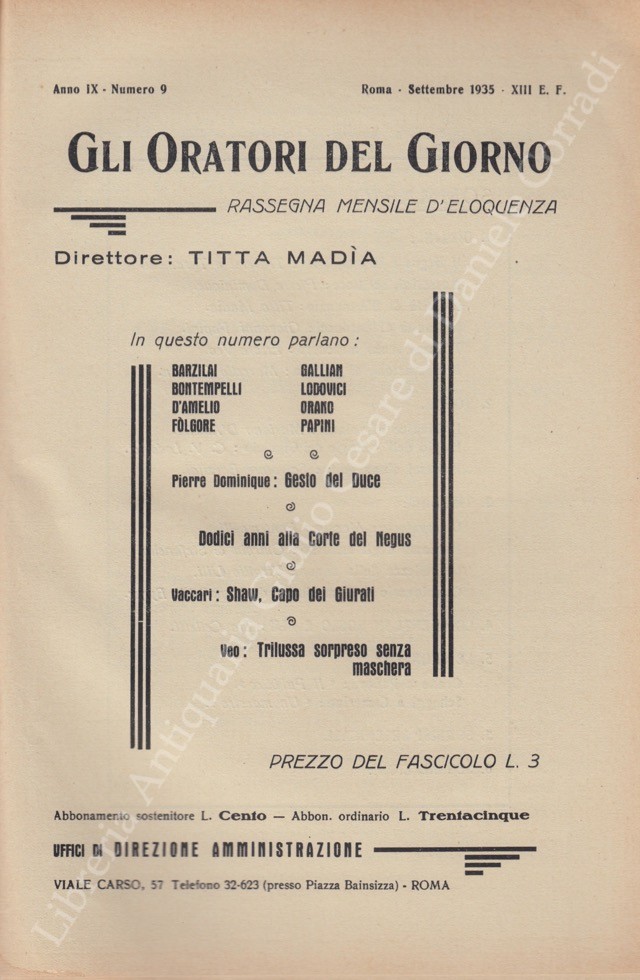 Gli oratori del giorno. Rassegna mensile d'eloquenza. Anno IX - Numero 9. Settembre 1935