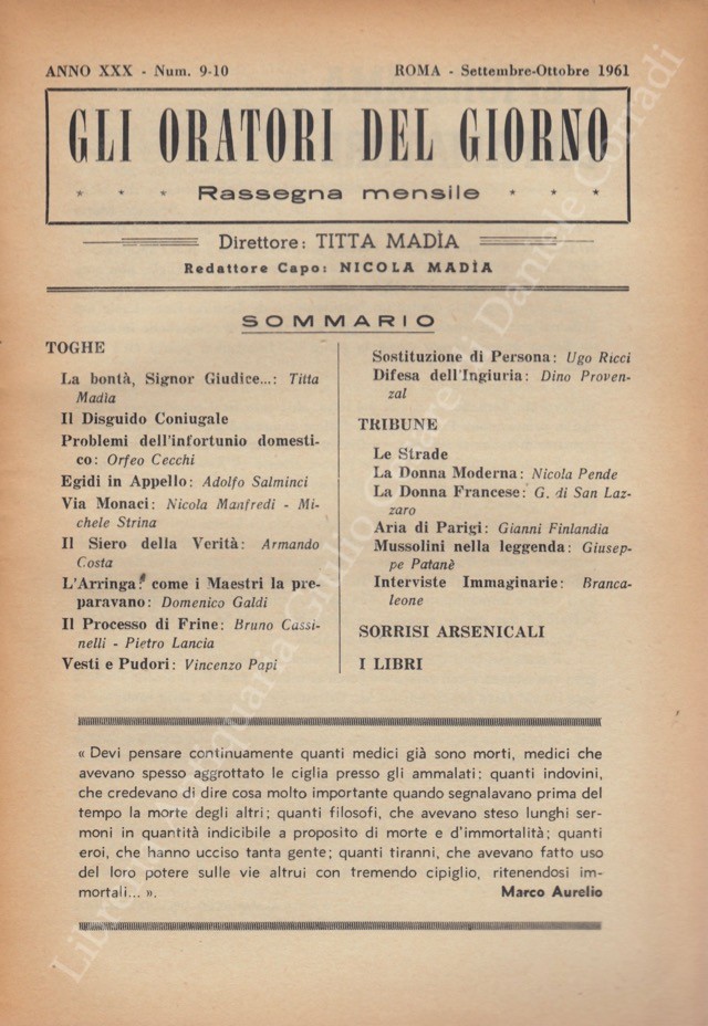 Gli oratori del giorno. Rassegna mensile d’eloquenza. Anno XXX – Numero 9-10. Settembre-Ottobre 1961