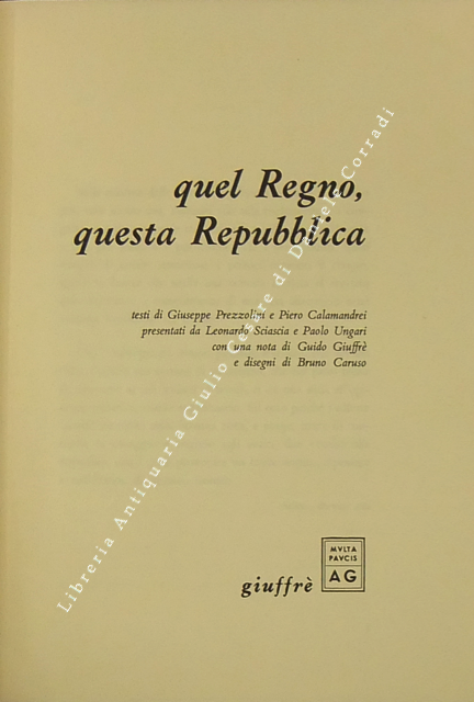 Quel Regno, questa Repubblica. Testi di Giuseppe Prezzolini e Piero Calamandrei presentati da Leonardo Sciascia e Paolo Ungari con una nota di Guido Giuffrè e disegni di Bruno Caruso