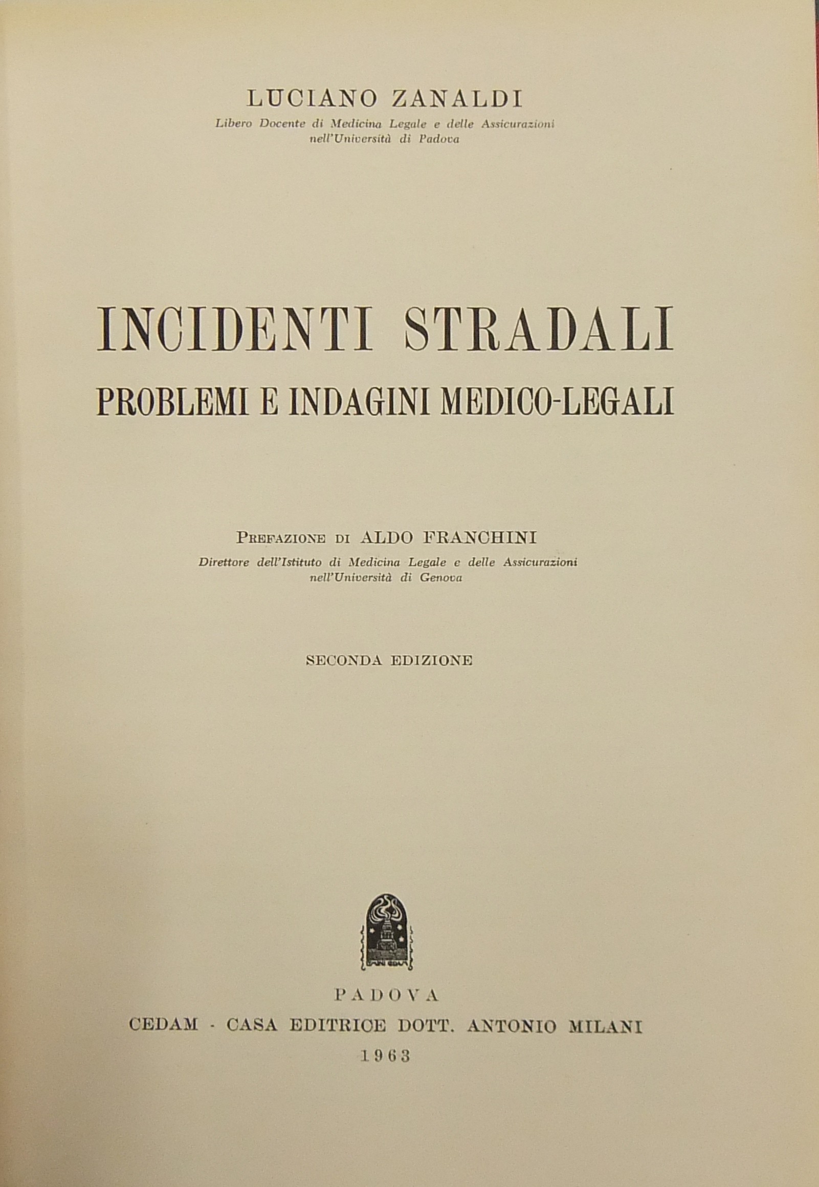Incidenti stradali. Problemi e indagini medico-legali. Prefazione di Aldo Franchini