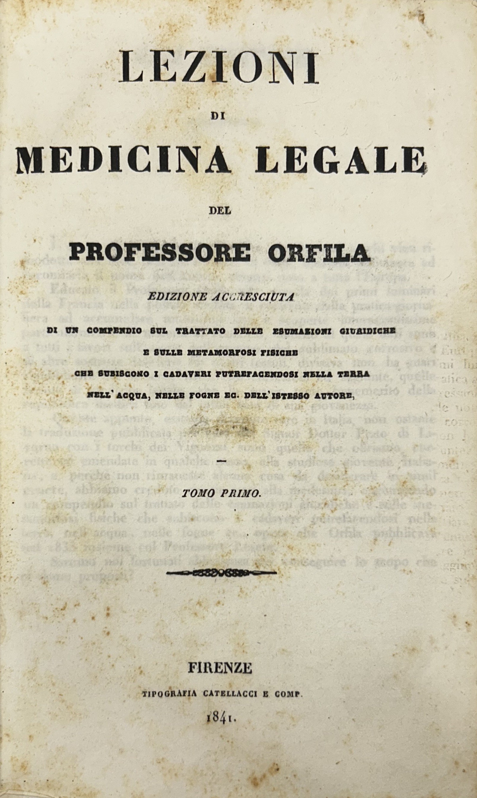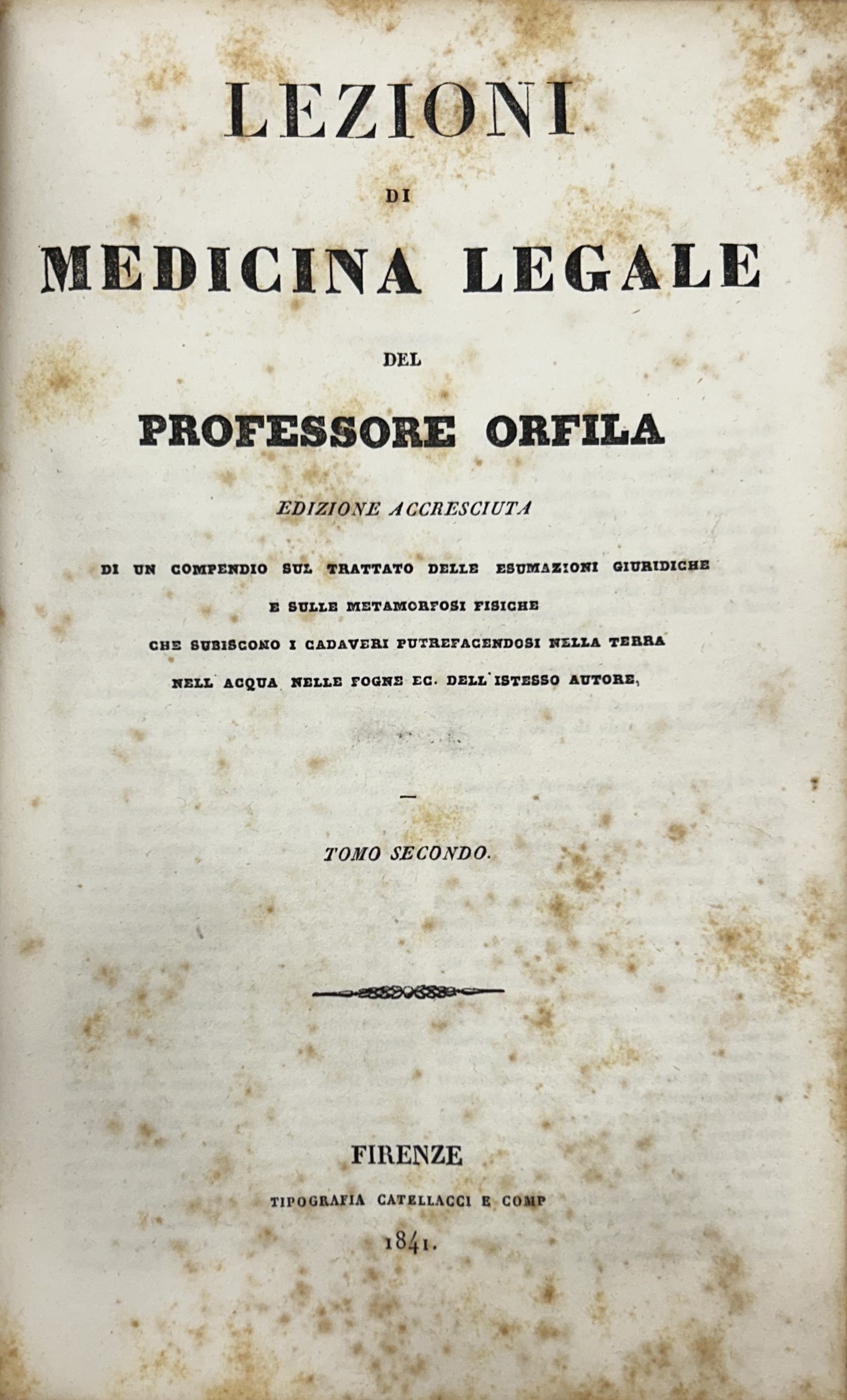 Edizione accresciuta di un compendio sul trattato delle esumazioni giuridiche e sulle metamorfosi fisiche che subiscono i cadaveri putrefacendosi nella terra, nell'acqua, nelle fogne ec. Dell'istesso AutoreLuogo: Firenze