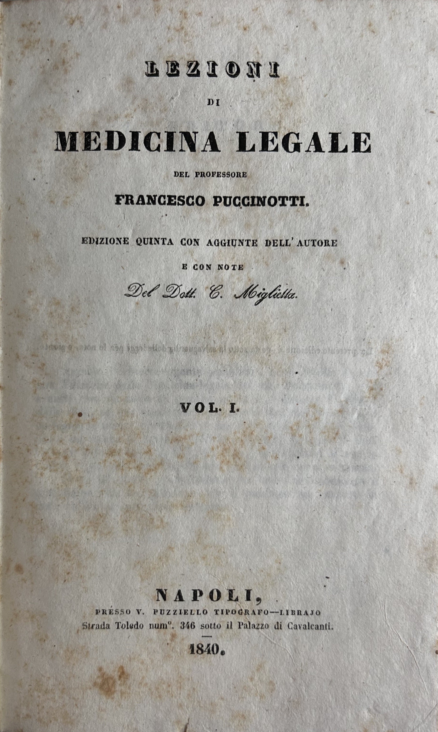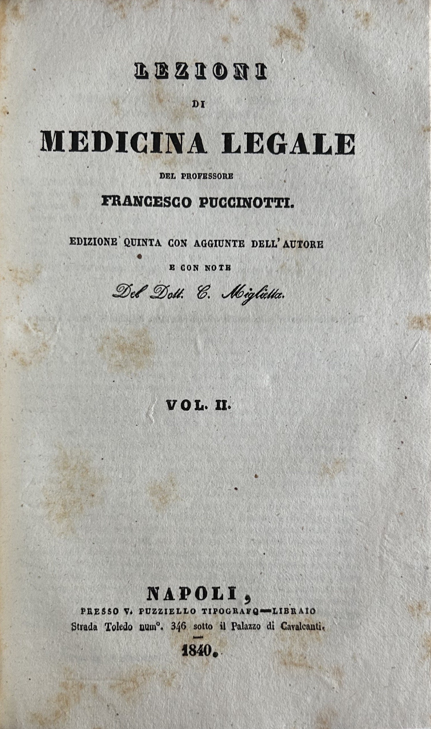 Edizione quinta con aggiunte dell'autore e con note del Dott. C. MigliettaLuogo: Napoli