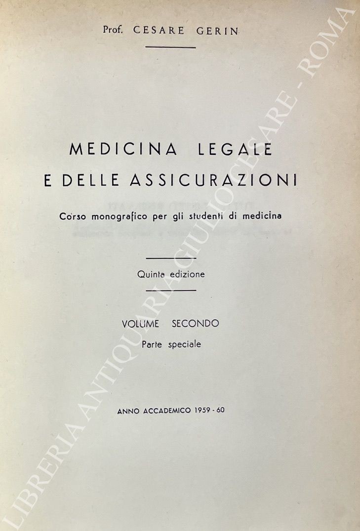 Medicina legale e delle assicurazioni. Corso monografico per gli studenti di medicina. Anno accademico 1959-60. Vol. I - Parte introduttiva e parte generale; Vol. II - Parte speciale
