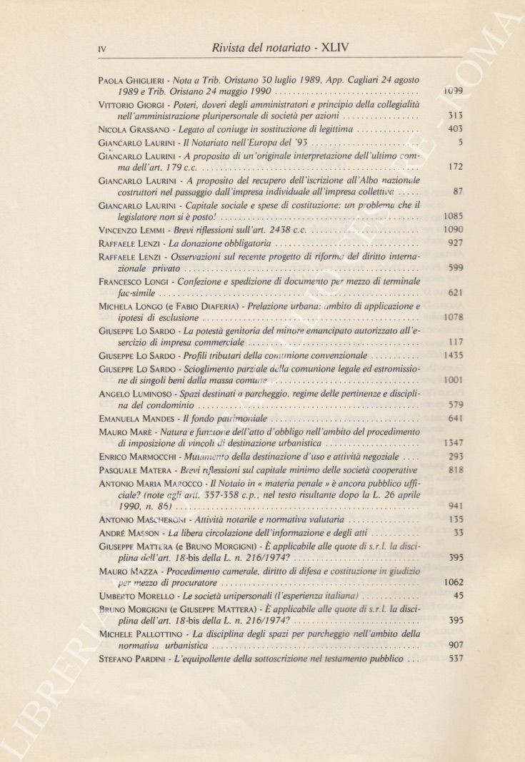Rivista del Notariato. Rassegna di diritto e pratica notarile. Anno XLIV - 1990