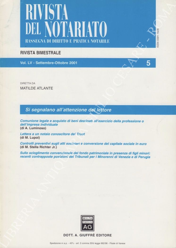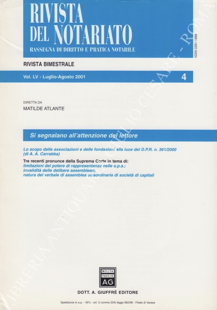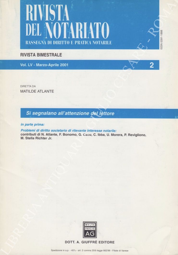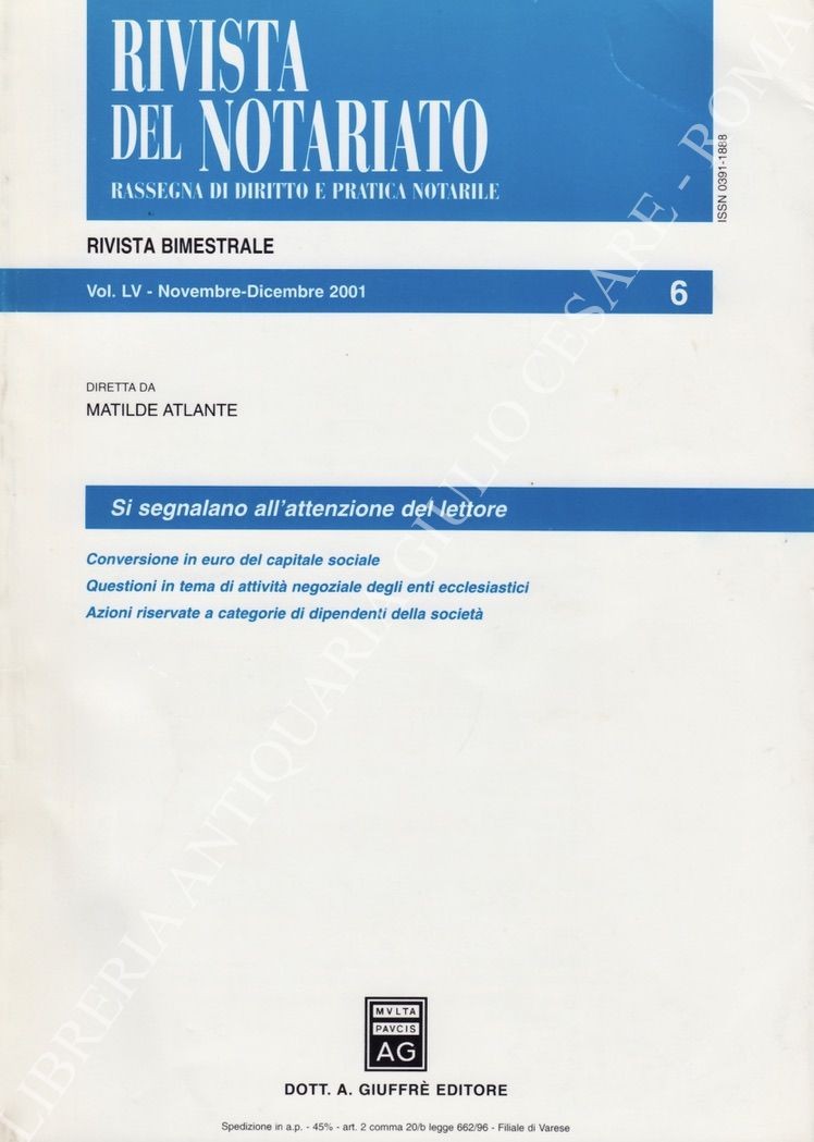 Rivista del Notariato. Rassegna di diritto e pratica notarile. Anno LV - 2001