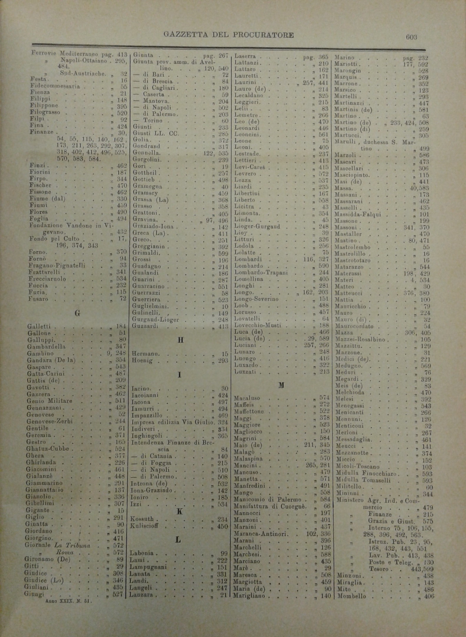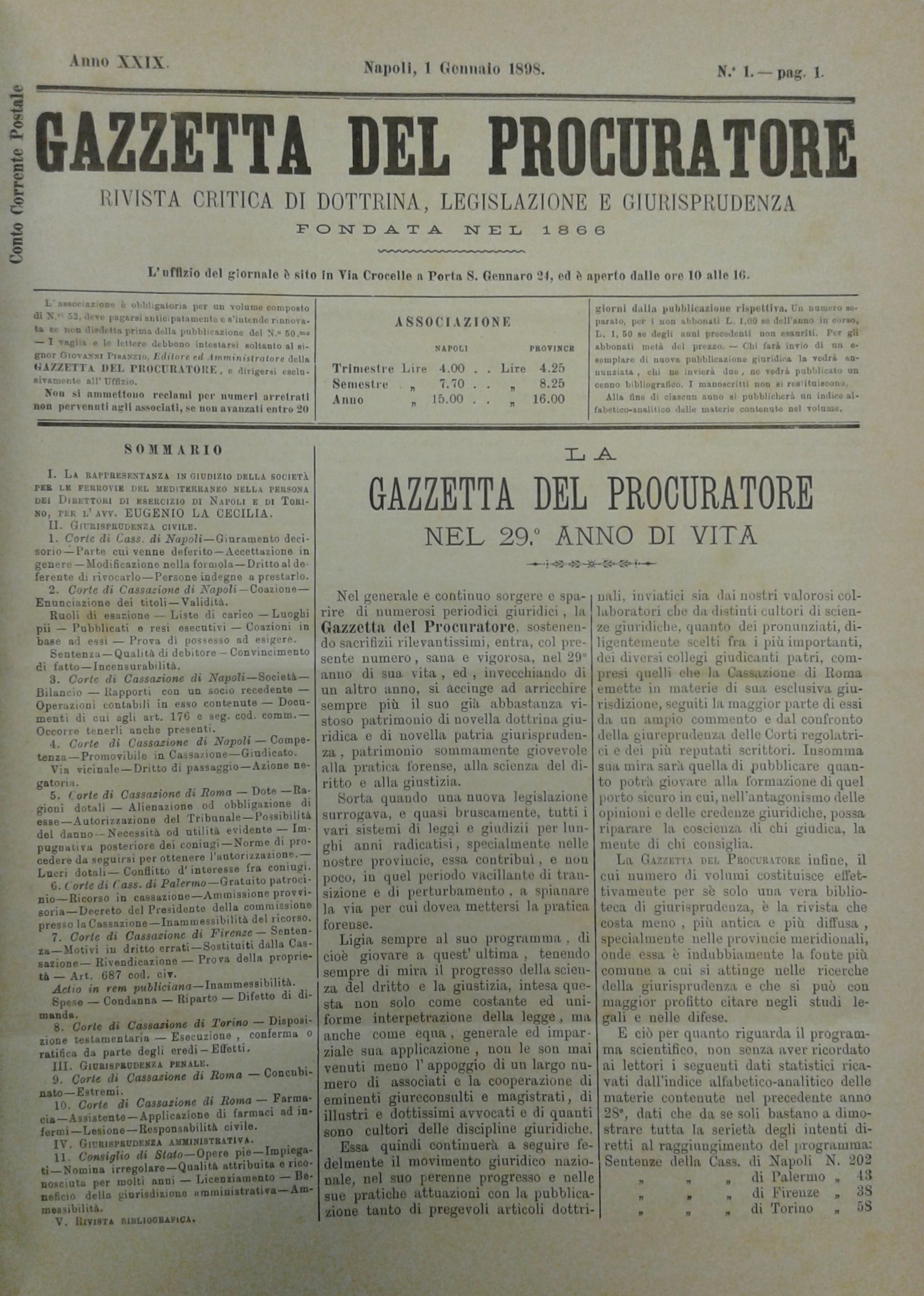 Gazzetta del Procuratore. Rivista critica di dottrina, giurisprudenza e legislazione. Diretta da Giovanni Battista di Lorenzo. Anno XXIX - 1898-99