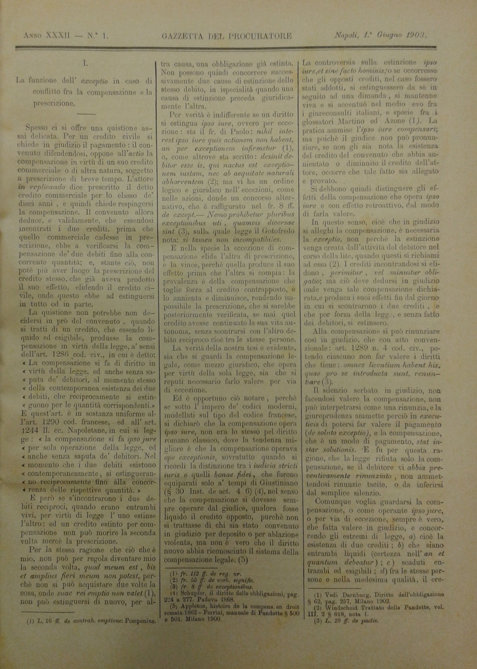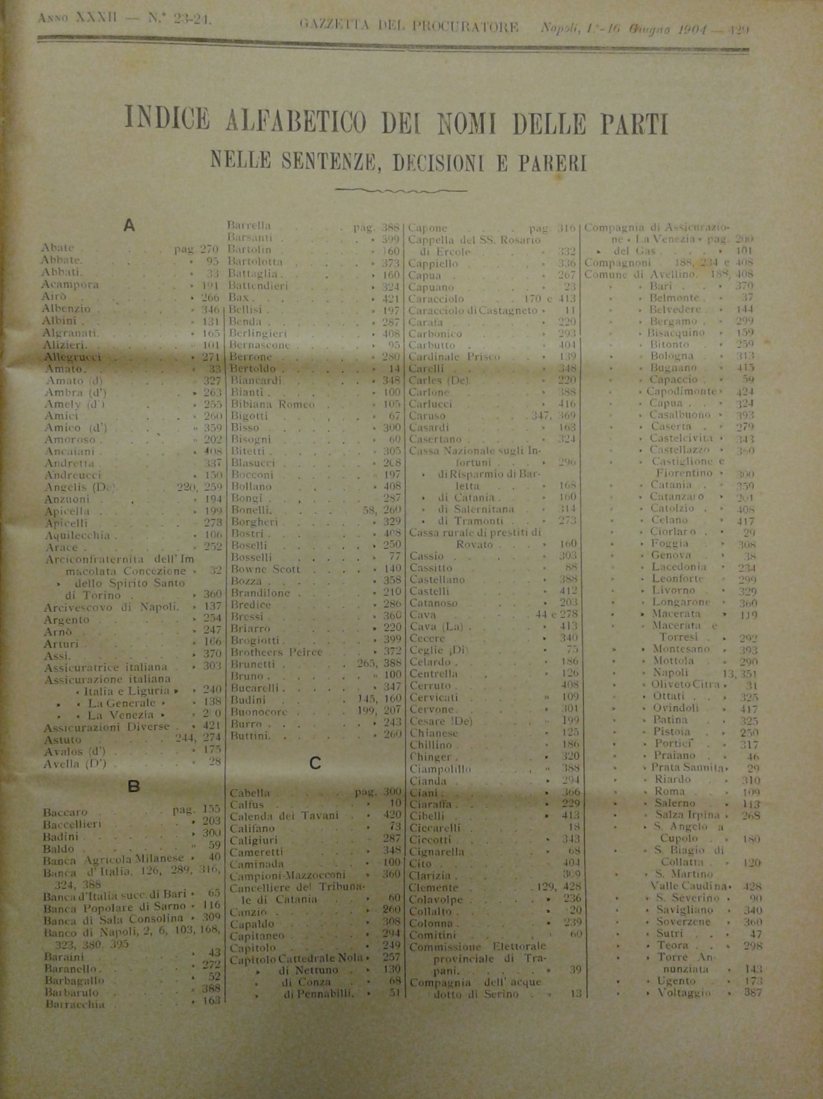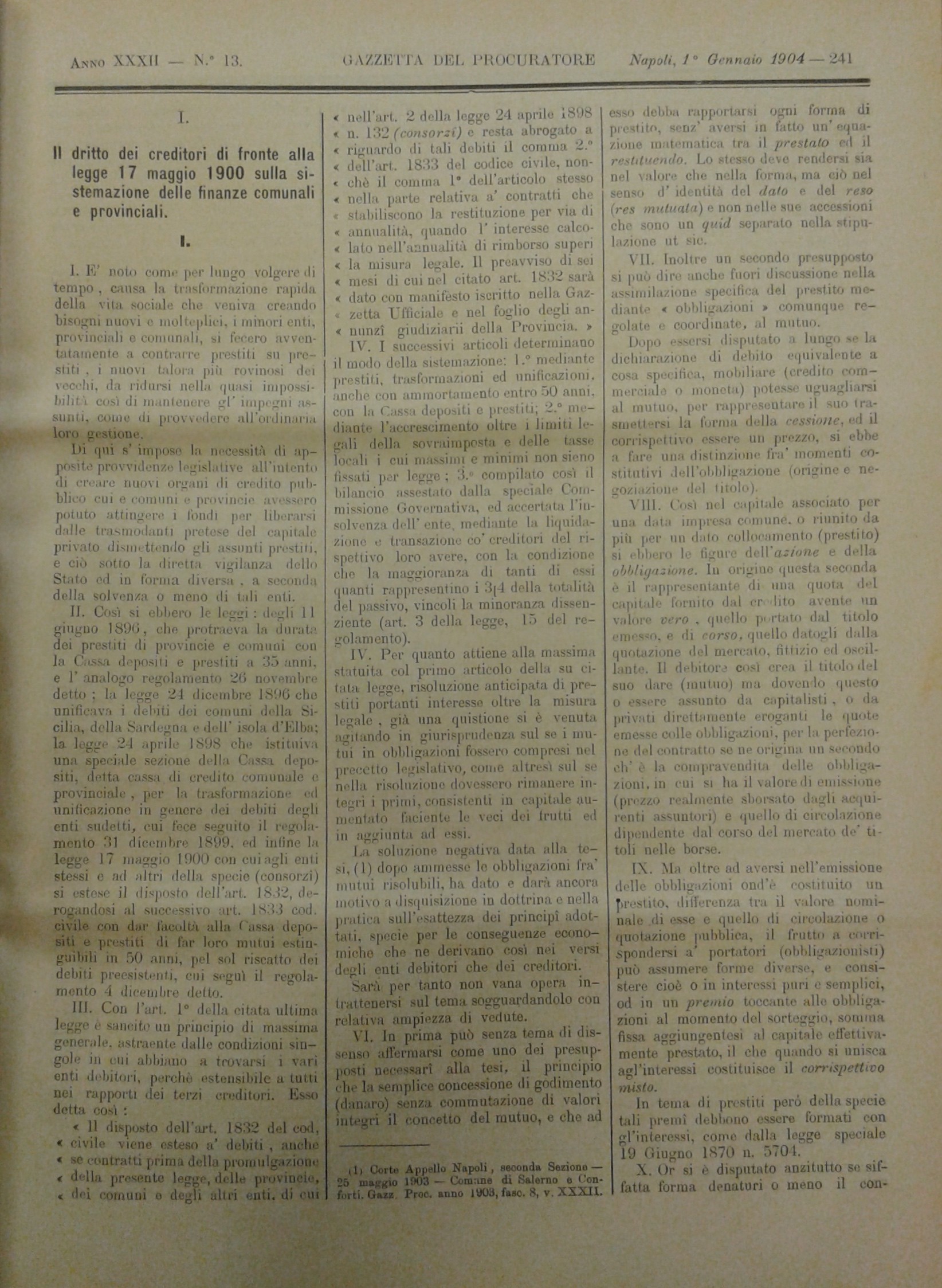 Gazzetta del Procuratore. Rivista critica di dottrina, legislazione e giurisprudenza. Diretta da Domenico De Roberto. Anno XXXII - 1903-1904
