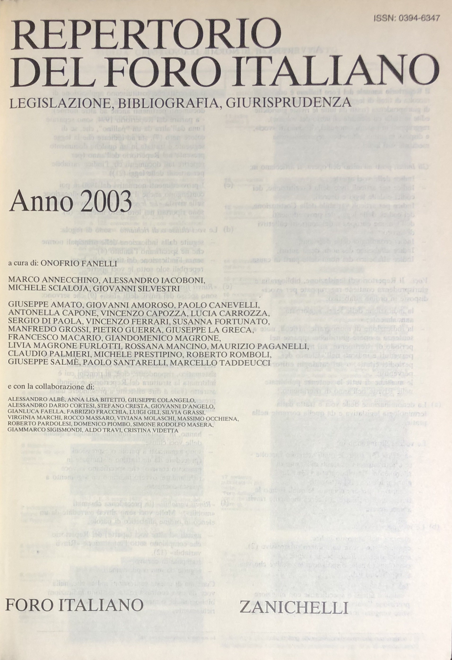 Repertorio Generale Annuale del Foro Italiano. Annata 2003