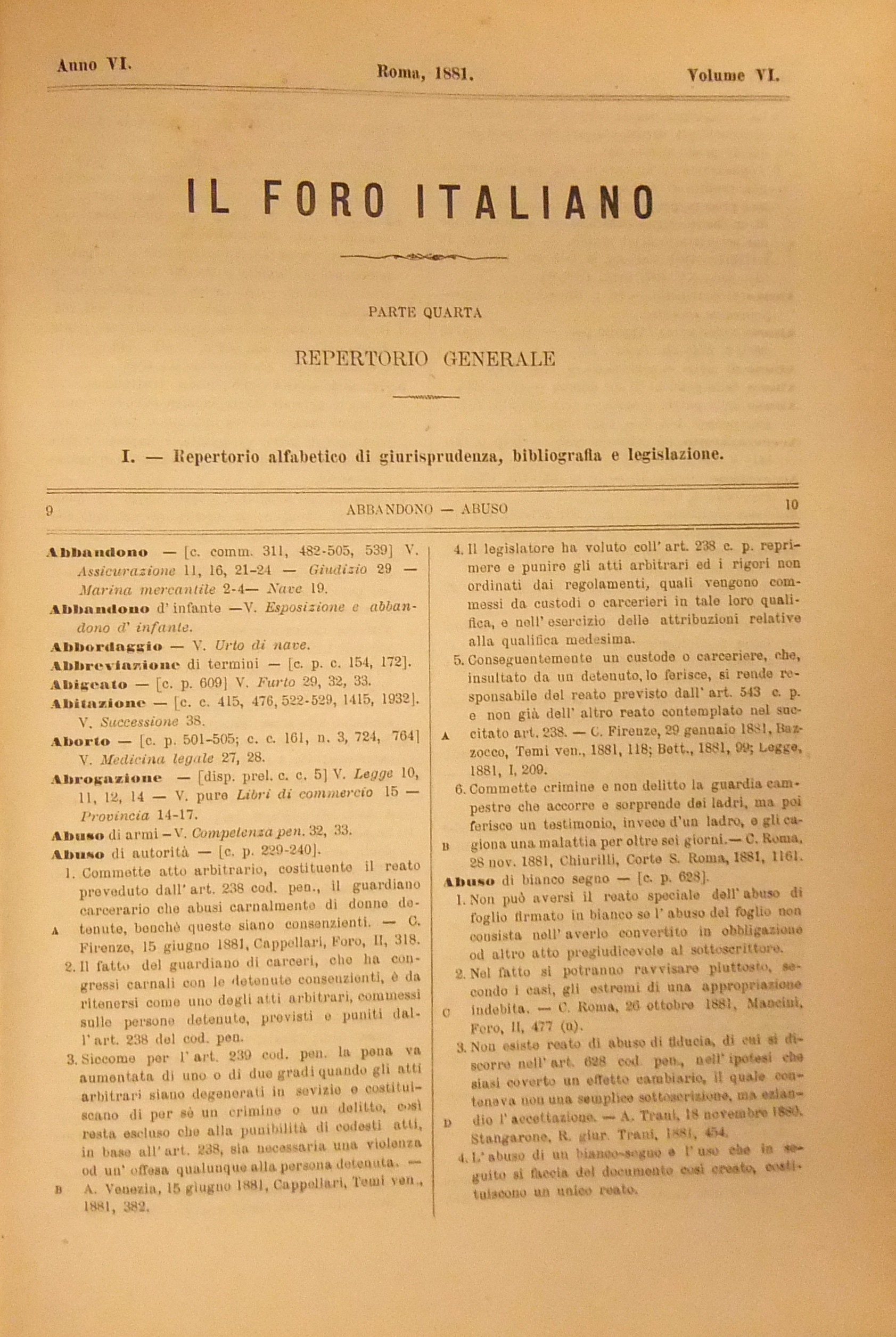Repertorio Generale Annuale del Foro Italiano. Vol. VI - Anno 1881