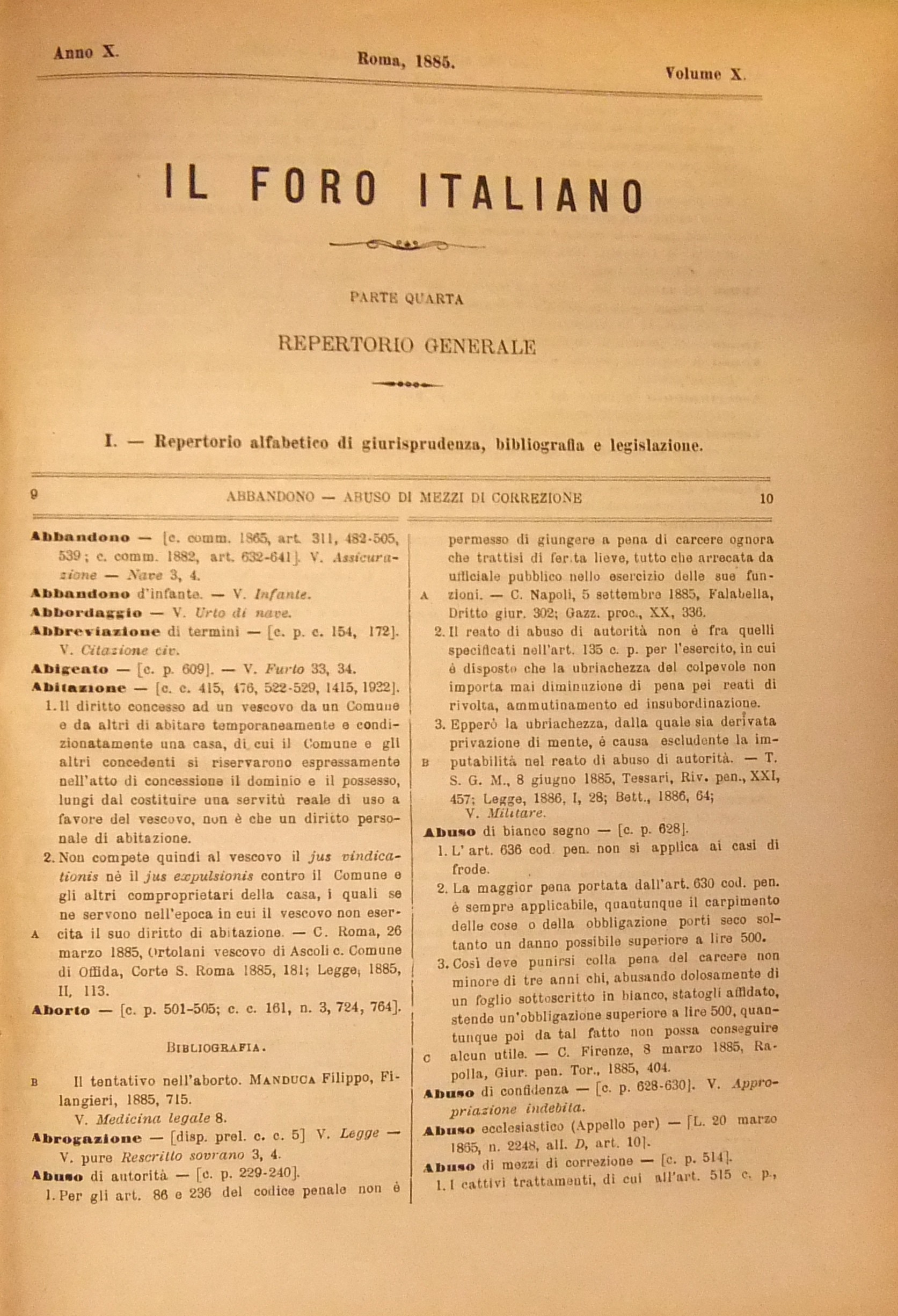 Repertorio Generale Annuale del Foro Italiano. Vol. X - Anno 1885