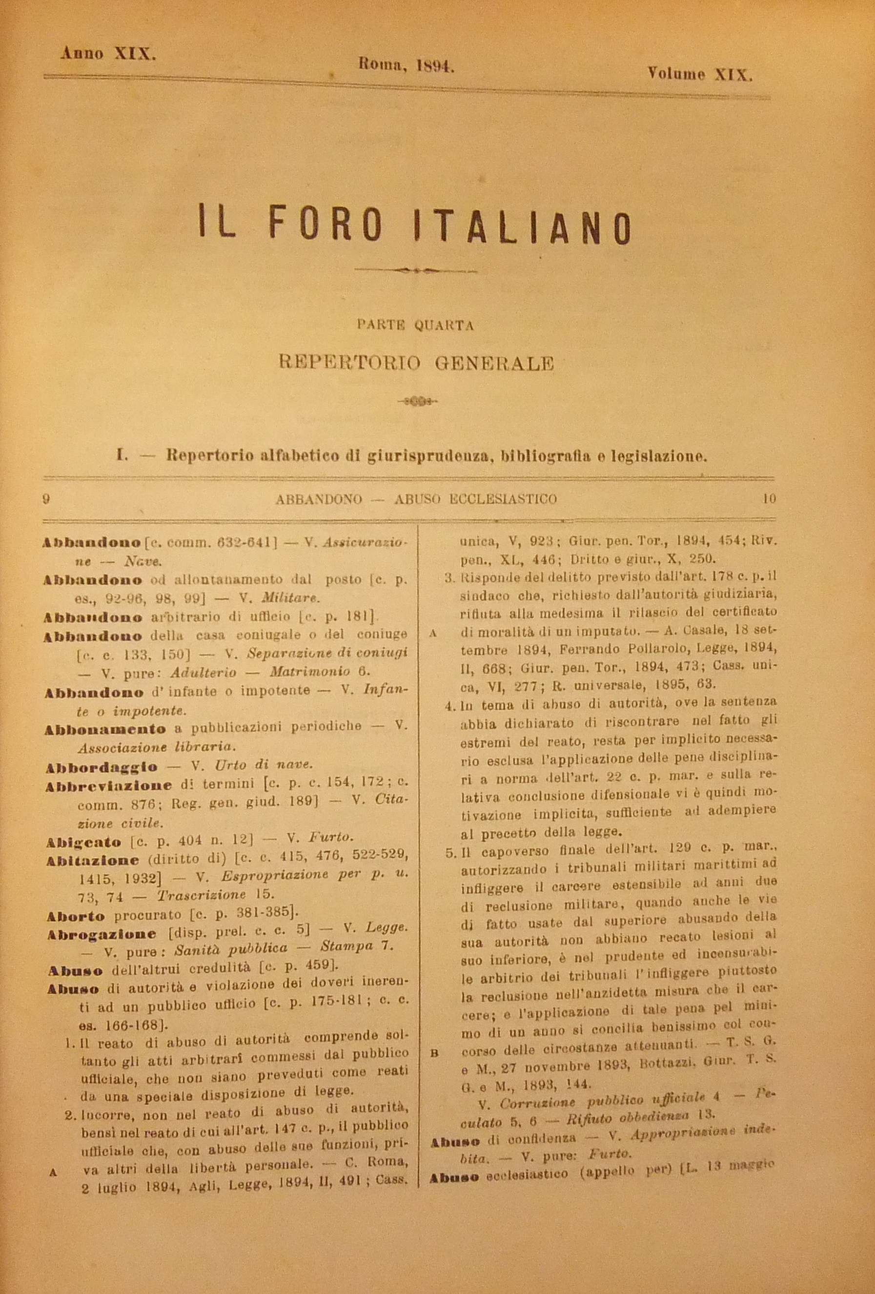 Repertorio Generale Annuale del Foro Italiano. Vol. XIX - Anno 1894